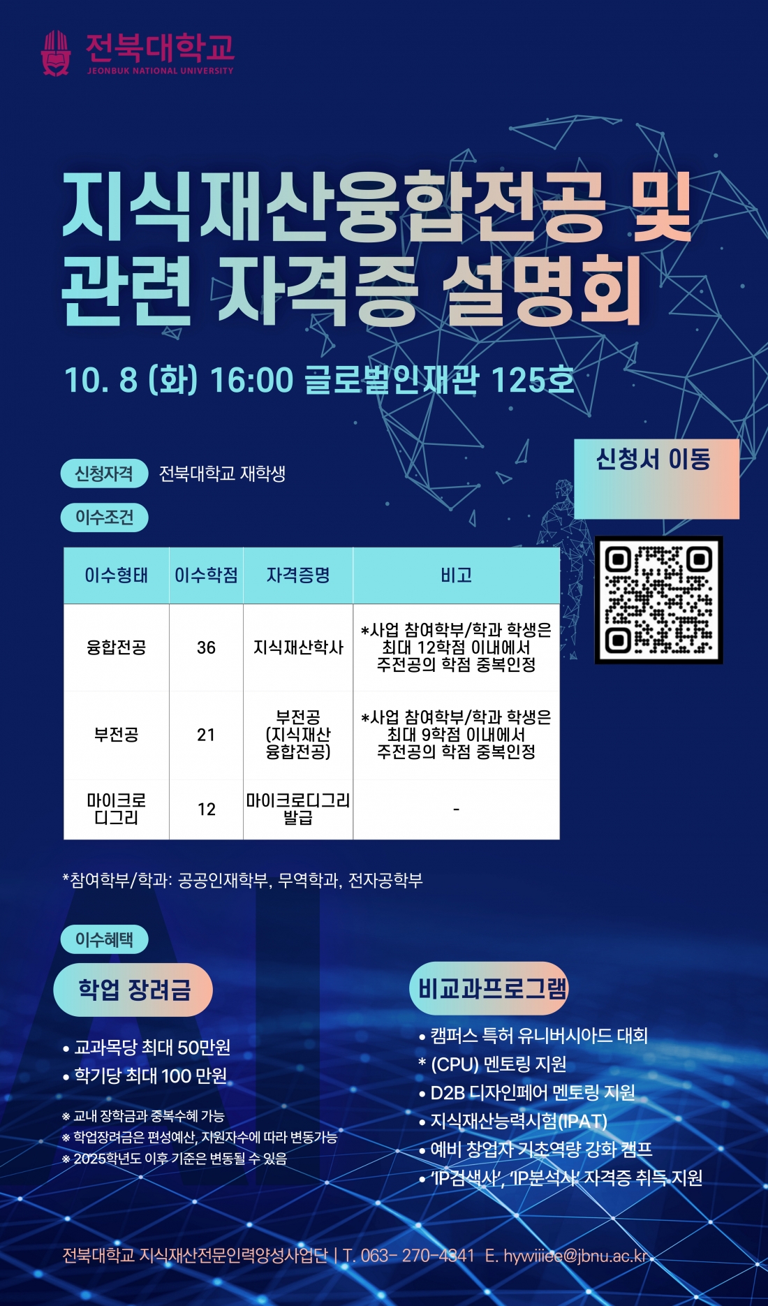 지식재산 융합전공 및 관련 자격증 설명회를 개최합니다.
